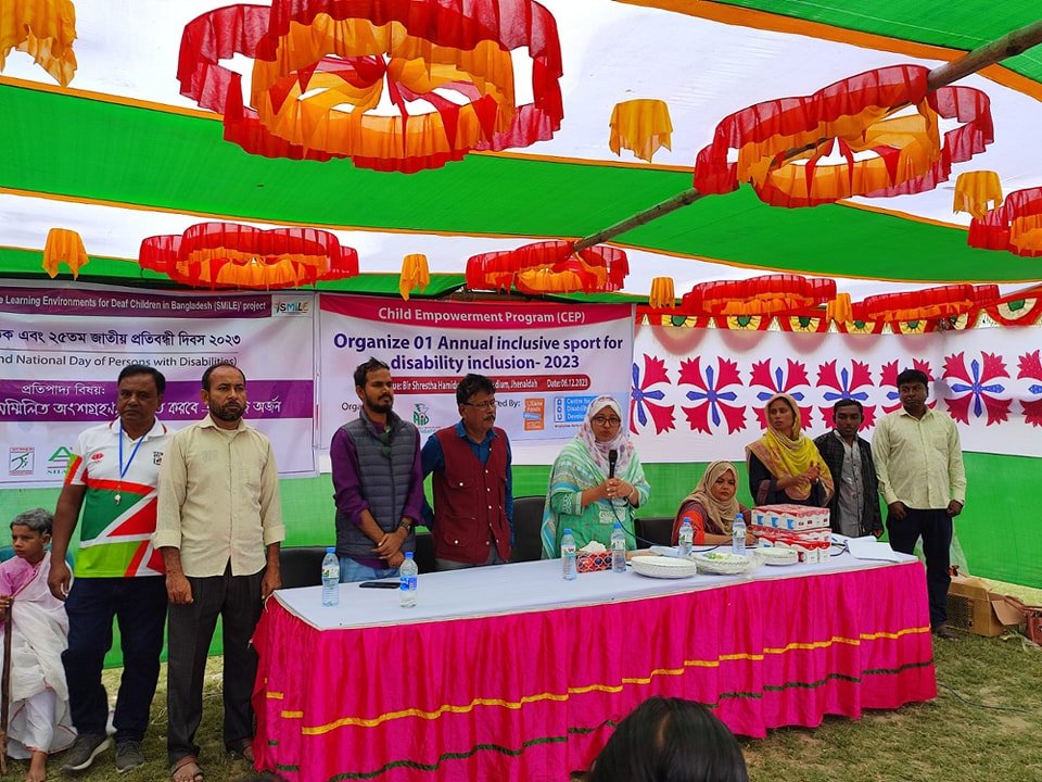 Read Moreএইড ফাউন্ডেশন কর্তৃক বাস্তবায়িত “ Improved Education Outcomes For Deaf children In Bangladesh (IEO-DCB )” প্রকল্পের আওতায় আন্তর্জাতিক ইশারাভাষা দিবস ও শ্রবণ প্রতিবন্ধী সপ্তাহ, ২০১৯ উদ্যাপন উপলক্ষে সপ্তাহ ব্যাপী বিভিন্ন অনুষ্ঠানের আয়োজন করা হয়। ০৮ আশ্বিন ১৪২৬ বঙ্গাব্দ (২৩ সেপ্টেম্বর ২০১৯ খ্রিস্টাব্দ) সকাল ১০.০০ টায় এক বণার্ঢ্য শোভাযাত্রা ও আলোচনা সভার মাধ্যমে অনুষ্ঠানের সূচনা হয়। পরবর্তীতে ইশারা ভাষা প্রতিযোগিতা, ক্রীড়া প্রতিযোগিতা, শিশু সুরক্ষা সেশন, ইশারা ভাষা সেশন এবং আজ ১৪ আশ্বিন ১৪২৬ বঙ্গাব্দ (২৯ সেপ্টেম্বর ২০১৯ খ্রিস্টাব্দ) সকাল ১০.০০ টায় ঝিনাইদহ প্রেসক্লাবে প্রতিবন্ধী নারীদের সামাজিক নিরাপত্তা এবং “প্রতিবন্ধী ব্যক্তির অধিকার ও সুরক্ষা আইন-২০১৩” সফল ভাবে বাস্তবায়নের দাবিতে সাংবাদিক সম্মেলন এবং মানব বন্ধন কর্মসূচির মাধ্যমে আন্তর্জাতিক ইশারাভাষা দিবস ও শ্রবণ প্রতিবন্ধী সপ্তাহ-২০১৯ উদযাপন সমাপ্ত হয়।