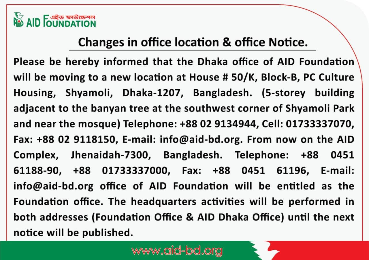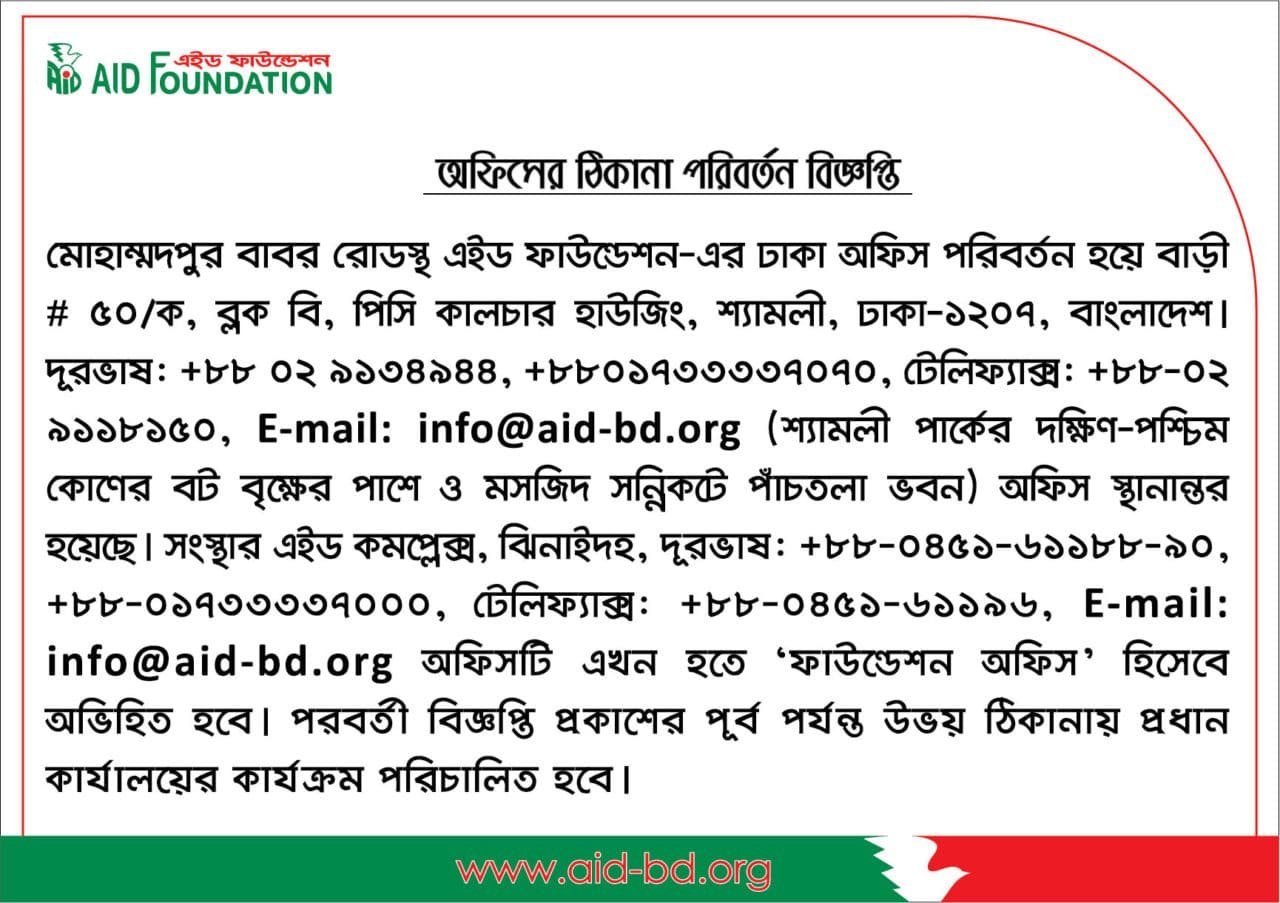 অফিসের ঠিকানা পরিবর্তন বিজ্ঞপ্তি