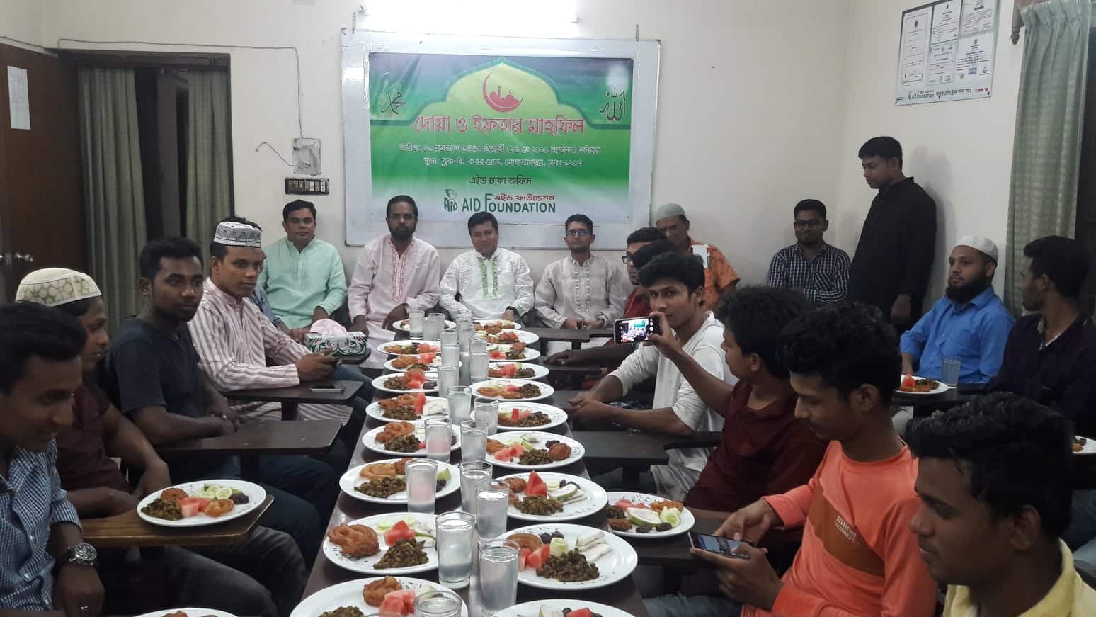 পবিত্র মাহে রমজান উপলক্ষে এইড ফাউন্ডেশন এর ঢাকা অফিস এ অদ্য ১৯ রমজান ১৪৪০ হিজরী (২৬ মে ২০১৯ খ্রিস্টাব্দ) শনিবার আলোচনা, দোয়া ও ইফতার মাহফিলের আয়োজন করা হয়। উক্ত দোয়া ও ইফতার মাহফিলের পূর্বে , সংযম কি, কেন এবং এর প্রেক্ষাপট বিষয়ে সম্মানীয় উপস্থিতিরা মূল্যবান আলোচনা করেন যার সারাংশ হলো,