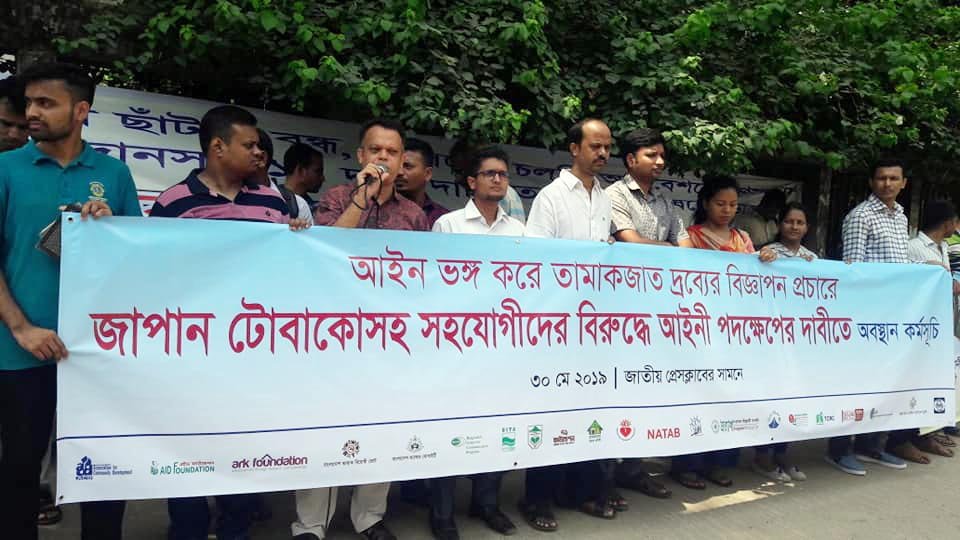 তামাক নিয়ন্ত্রণ আইনভঙ্গ করে জাপান টোব্যাকোর ব্যাপক প্রচার-প্রচারণা এবং বিজ্ঞাপনের বিরুদ্ধে আইনী পদক্ষেপ গ্রহণে স্মারকলিপি প্রদান